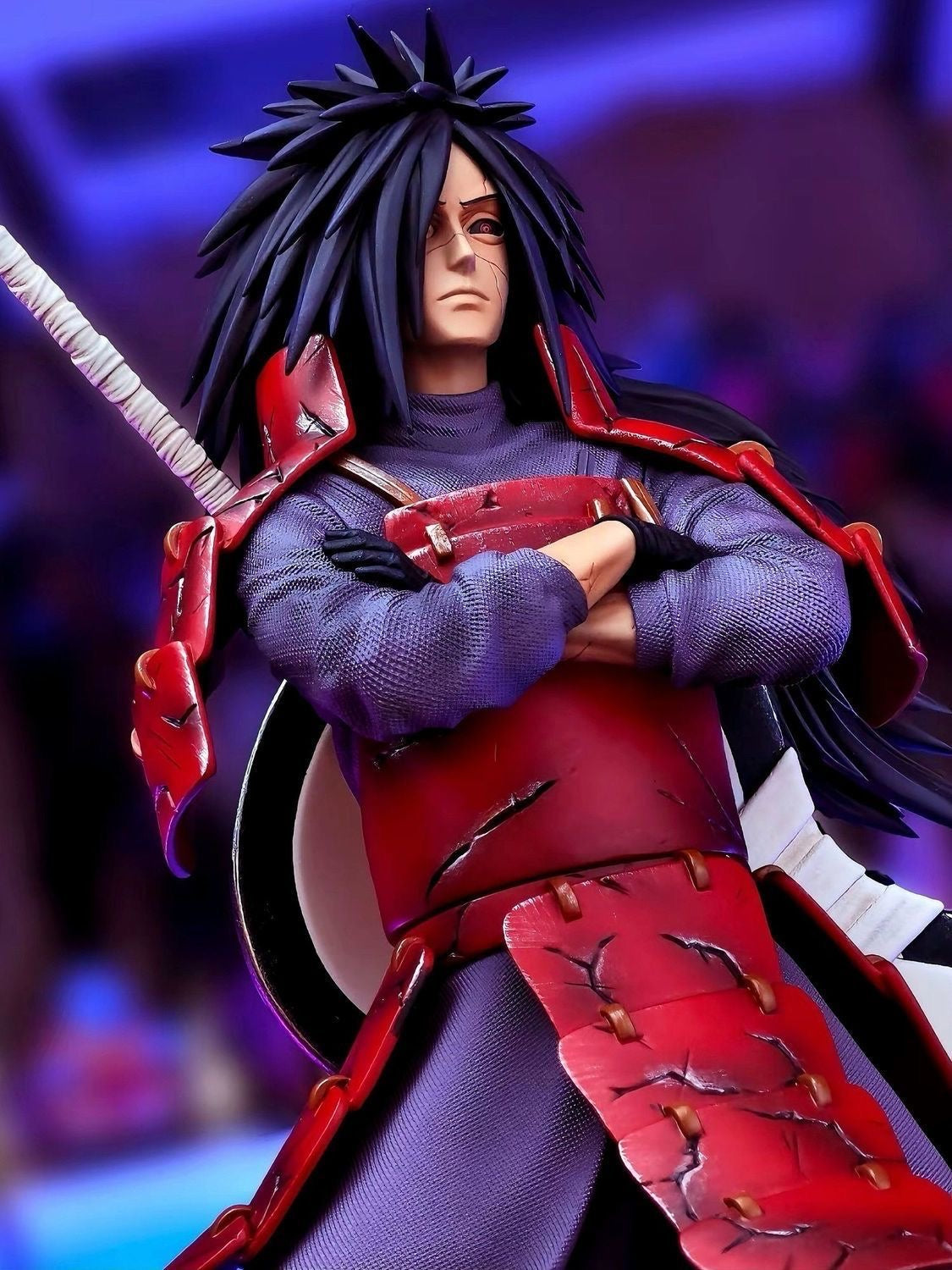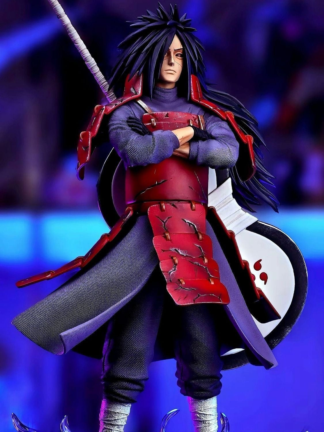 Awaken the power of the legendary Uchiha ancestor. This masterpiece captures Uchiha Madara at the height of his prowess—a moment frozen in time where the atmosphere trembles under the weight of his absolute authority. With his iconic long black hair flowing in the heat of battle and his Eternal Mangekyō Sharingan piercing through the soul of any adversary, this figure isn't just a display piece; it is the manifestation of the "God of Shinobi."